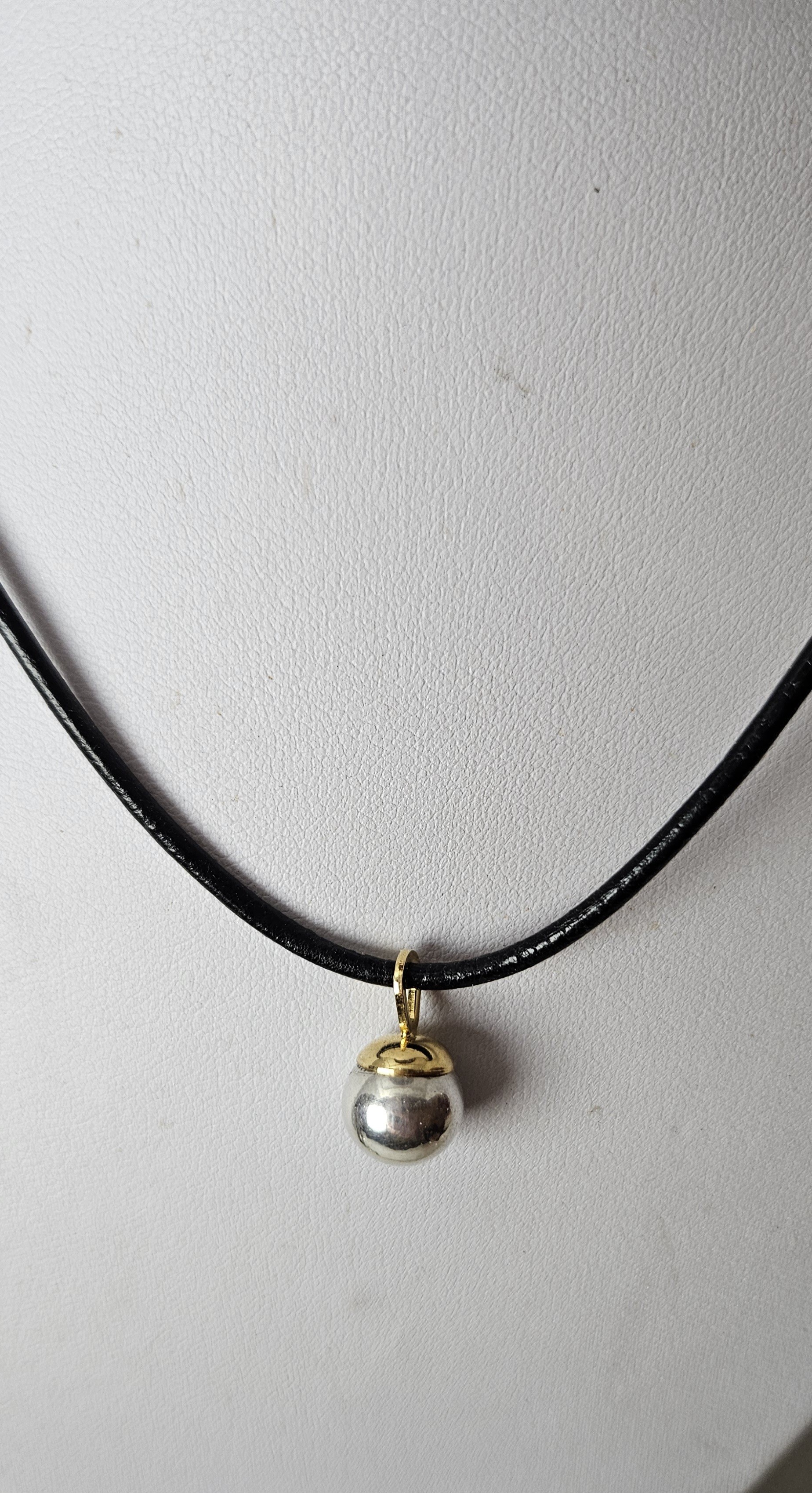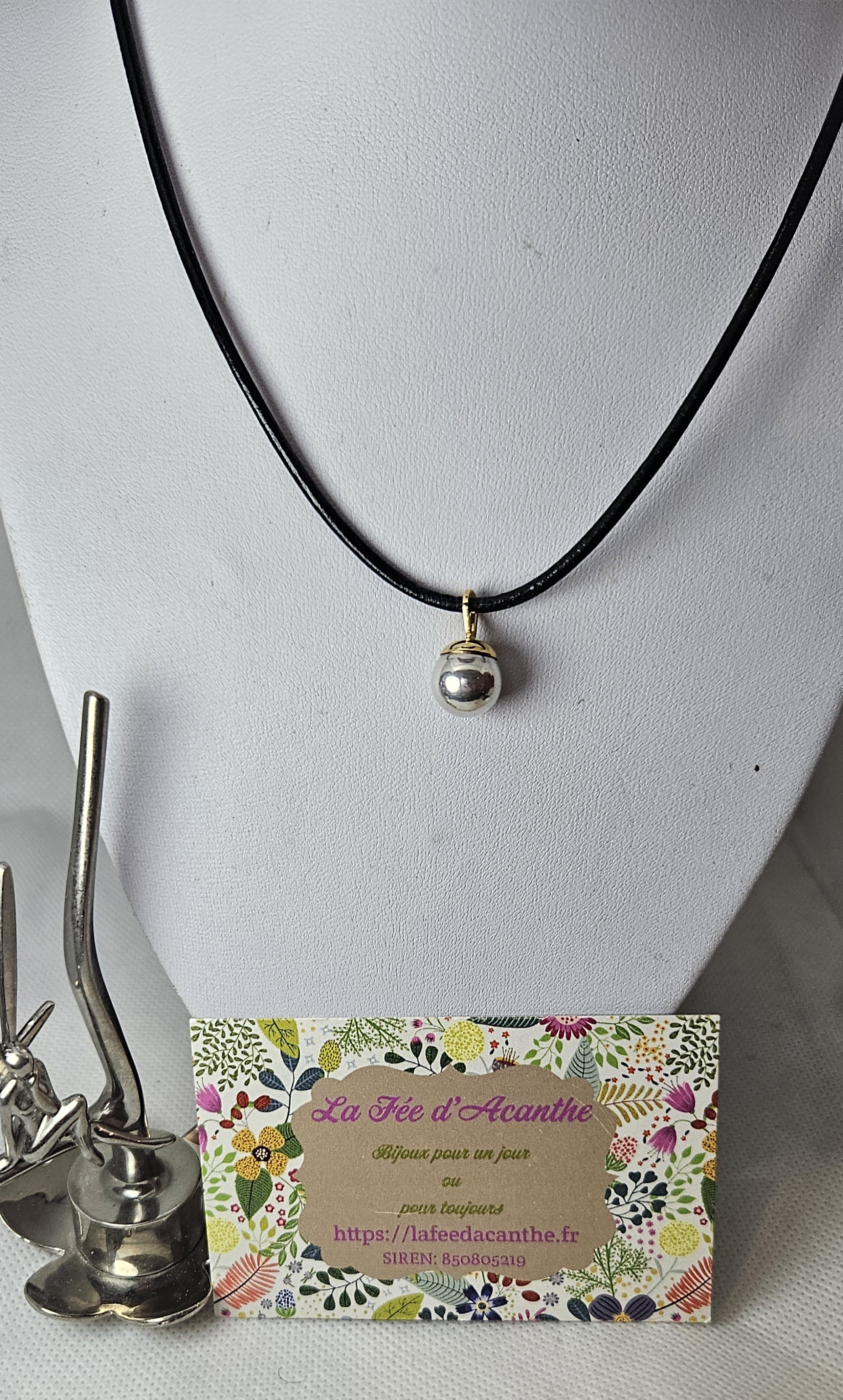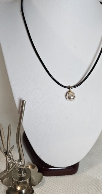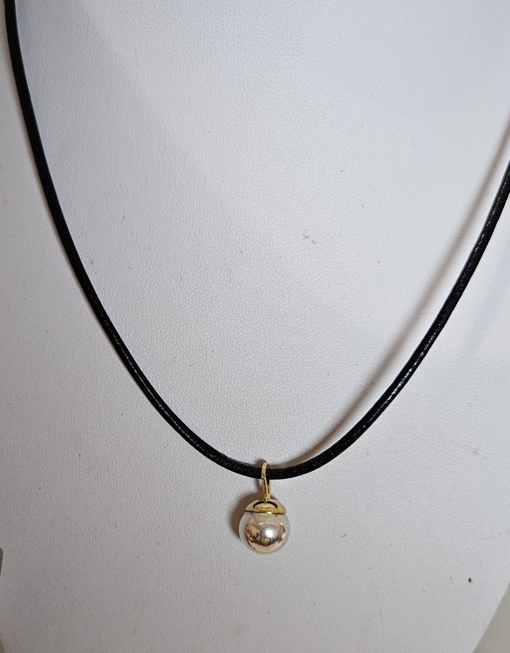 Collier perle argent 925, bélière acier doré , cordon cuir noir , fait main, modèle unique , créatrice
